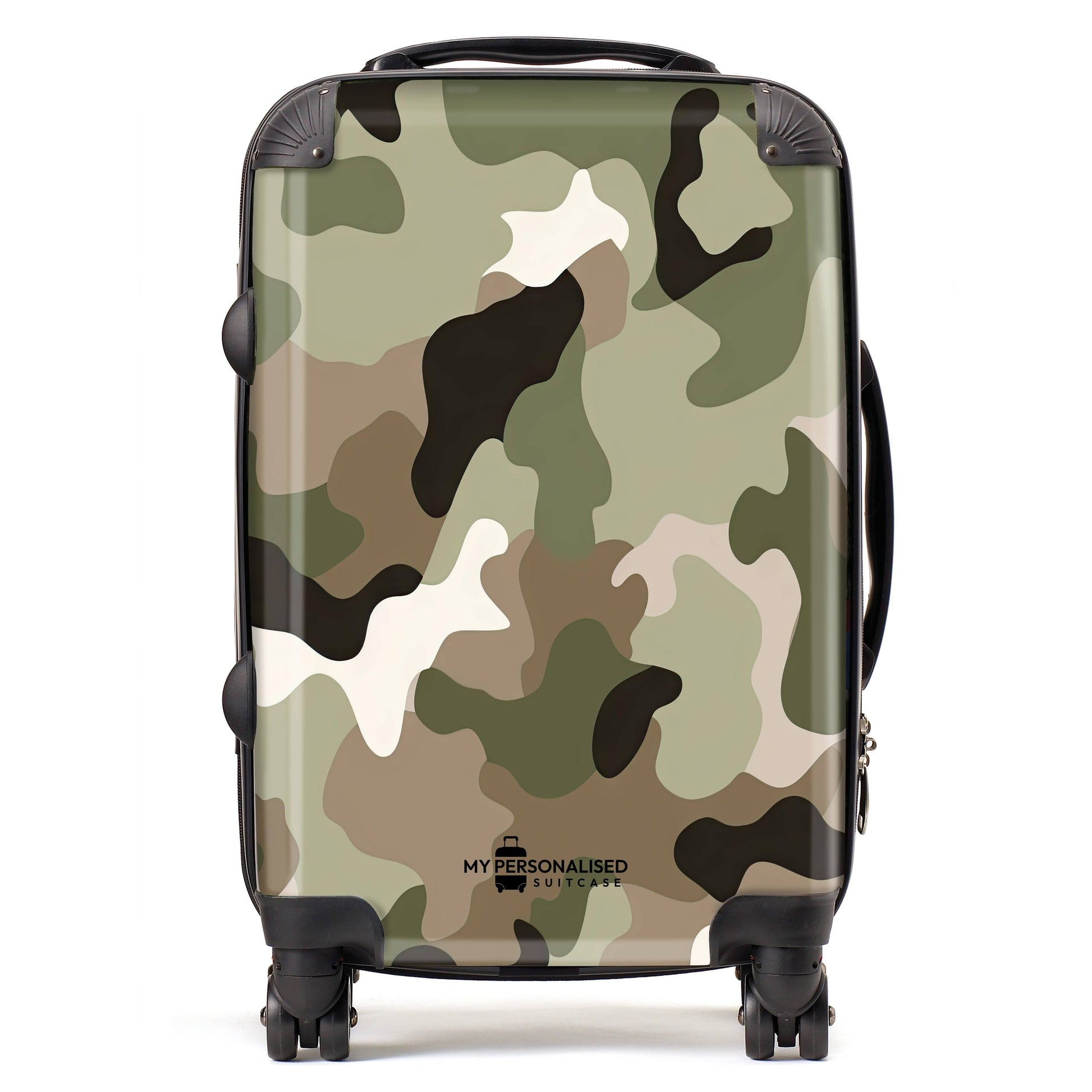 Our Personalised Suitcase with a base colour of green and brown camouflage is the perfect suitcase for you to personalise and make it your own. Personalise your luggage unique to you and travel in style knowing you will always find your suitcase on the airport carousel.