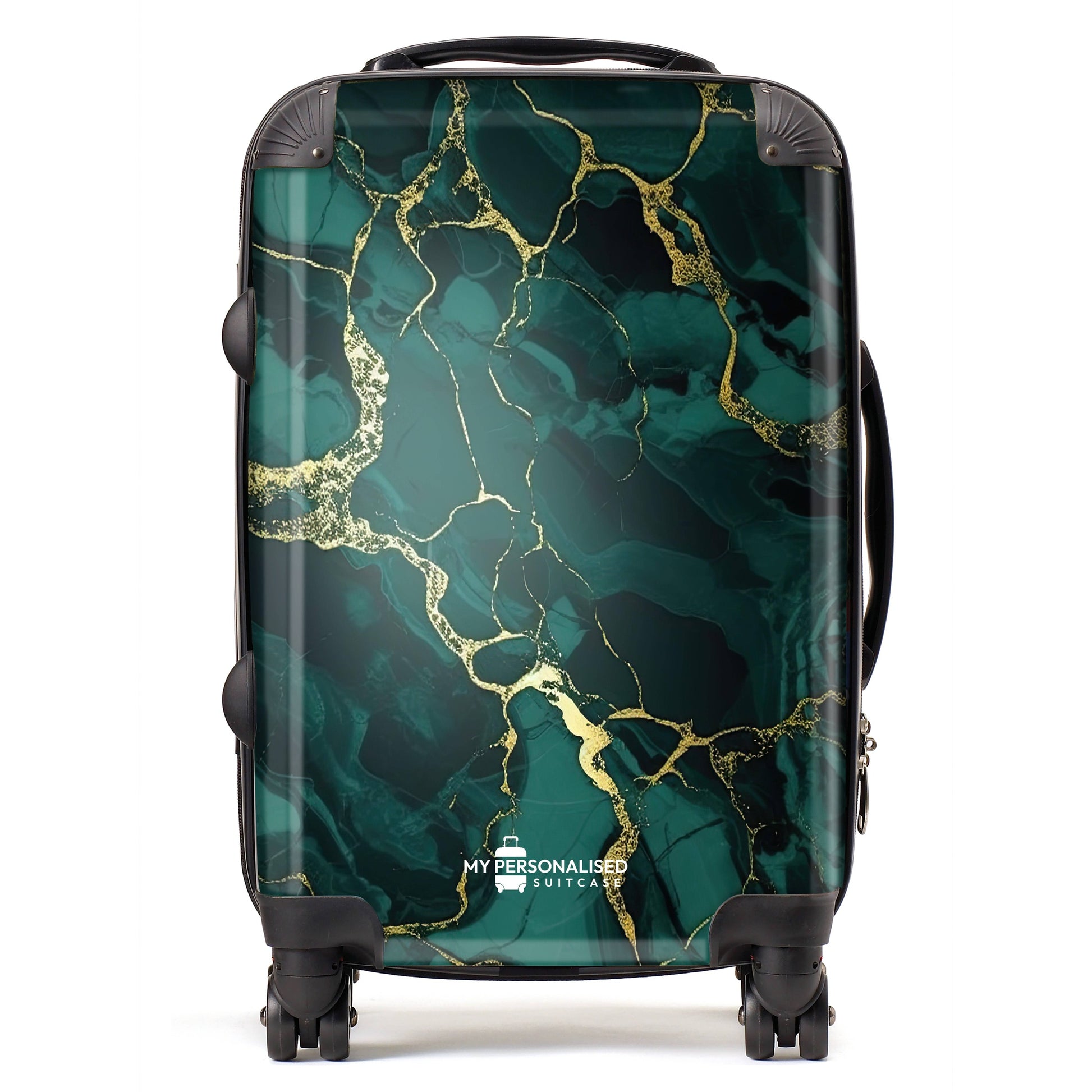 Our Personalised Suitcase with a base colour of Green and Gold marble is the perfect suitcase for you to personalise and make it your own. Personalise your luggage unique to you and travel in style knowing you will always find your suitcase on the airport carousel.