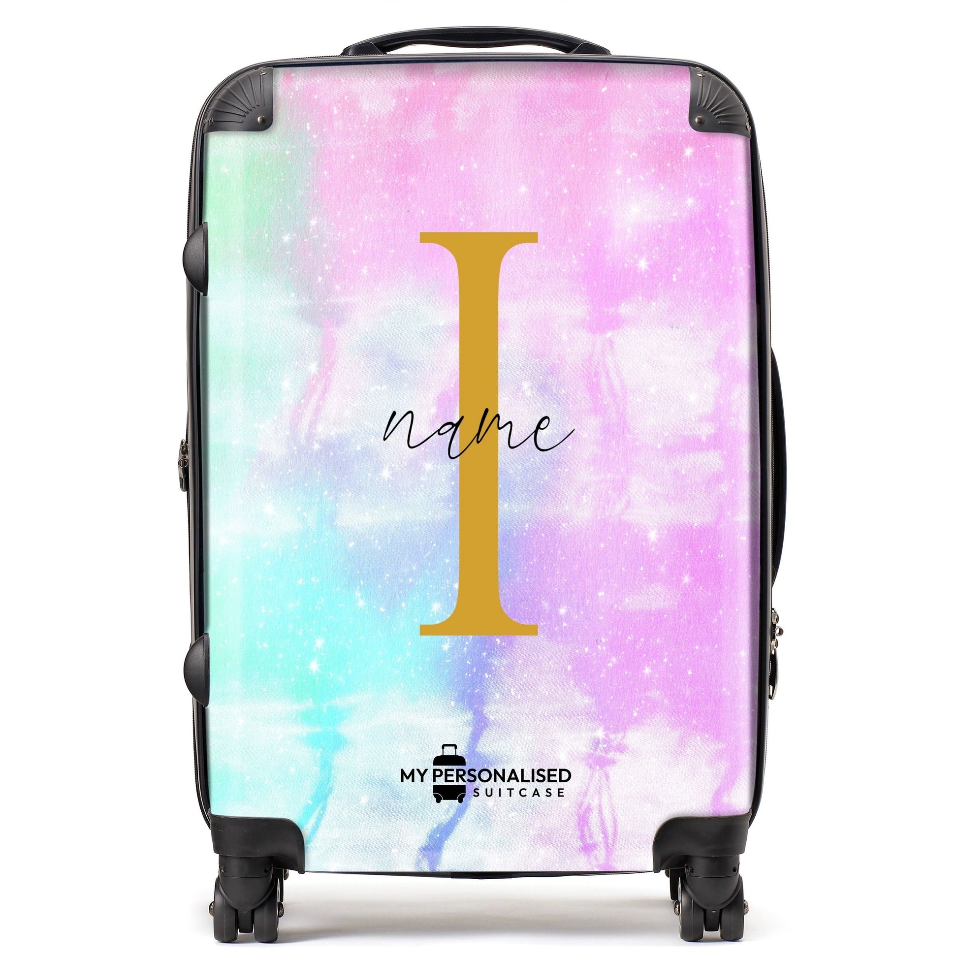 Our Personalised Suitcase with a base colour of Pastel Tie Dye is the perfect suitcase for you to personalise and make it your own. Personalise your luggage unique to you and travel in style knowing you will always find your suitcase on the airport carousel.