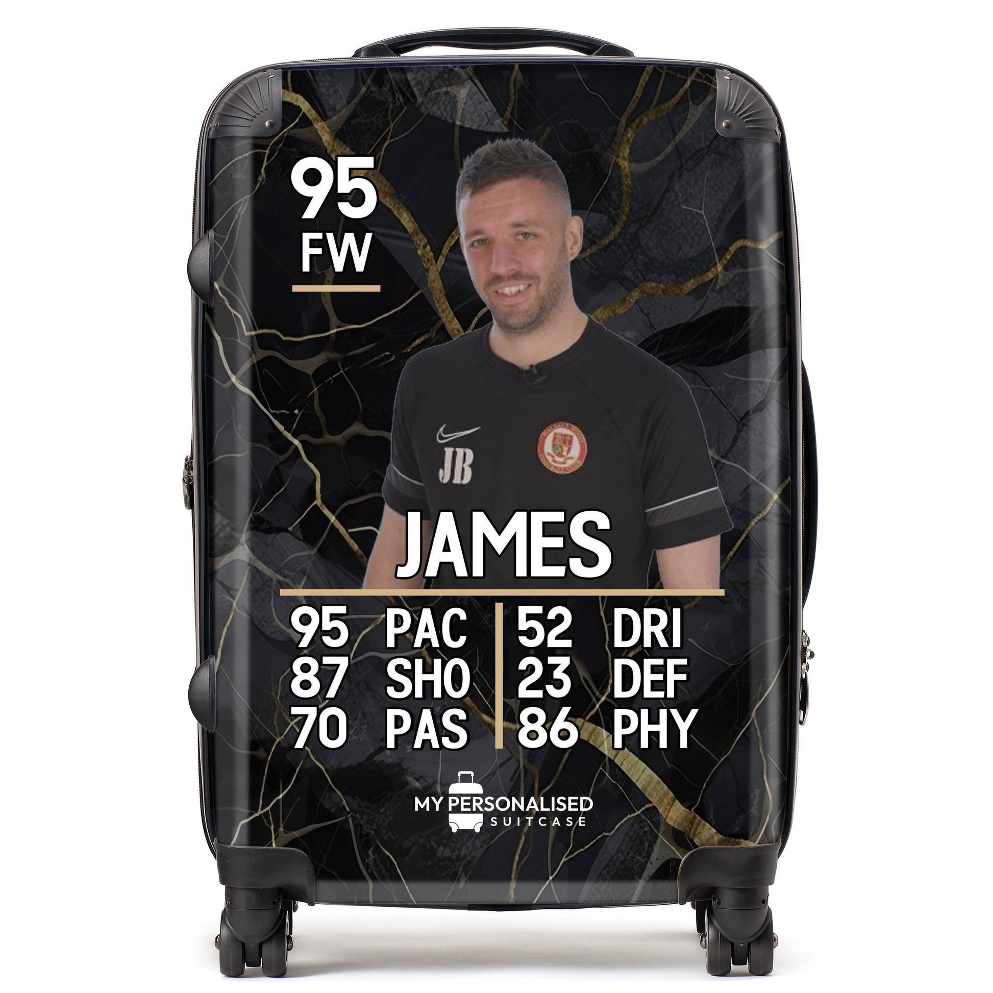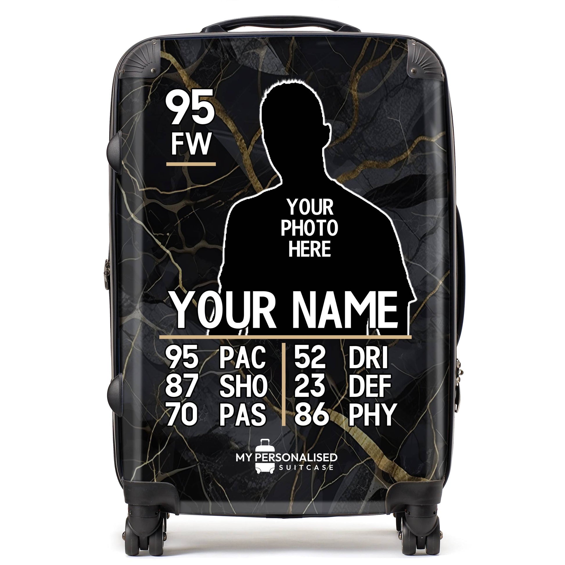 Our Personalised Football Player Card Suitcase with an option to upload your own photo and add football stats is the perfect suitcase for those football fans and players who want to have a fully customised and personalised suitcase and truly want to make it your own. Personalise your luggage unique to you and travel in style knowing you will always find your suitcase on the airport carousel.